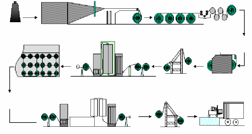 Purpose of warping is line up the warp yarn on warping beam according to width and weight of fabric, hence may ready for sizing process. Purpose of sizing is avoiding the damage of warp yarn by friction of weaving parts to yarn breakage or damage on surface. It also may combine several warp beams into one weaving beam to reach enough yarn ends.